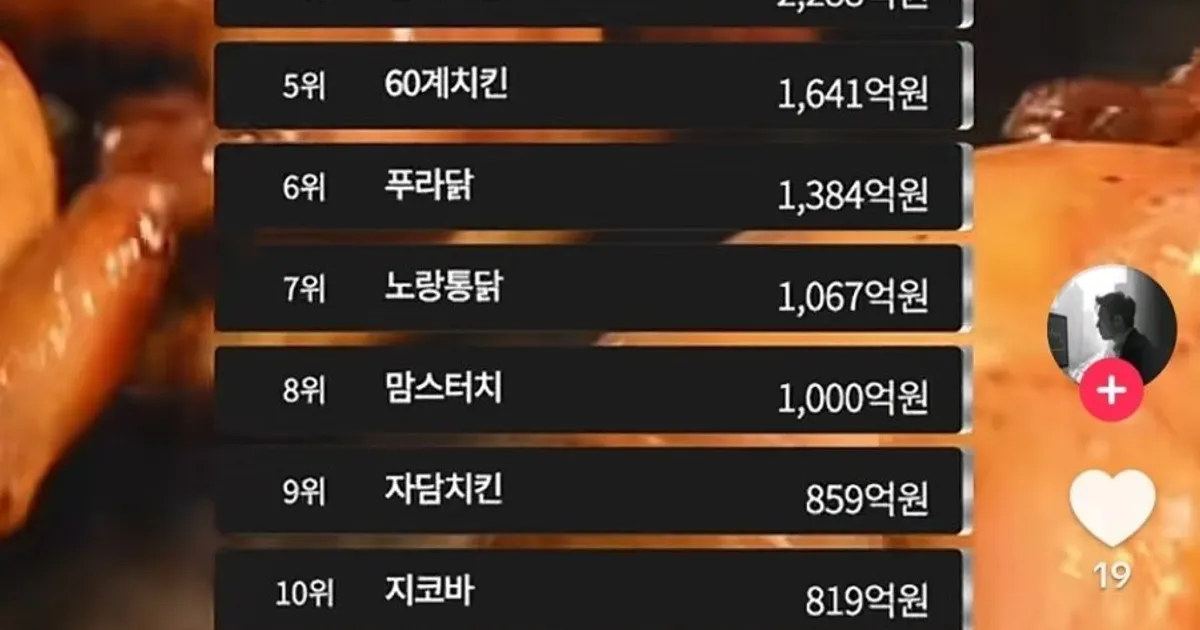 국내 치킨 브랜드 매출 순위
