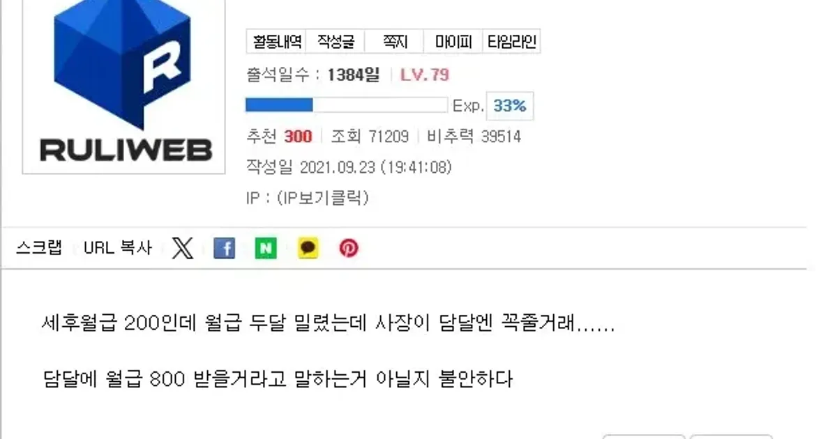 내 친구 다음달에 세후 월급 600 받는다고 자랑함