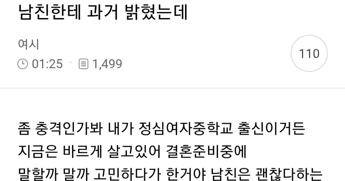결혼할 남친한테 과거를 밝혔다는 여자 ㄷㄷㄷ