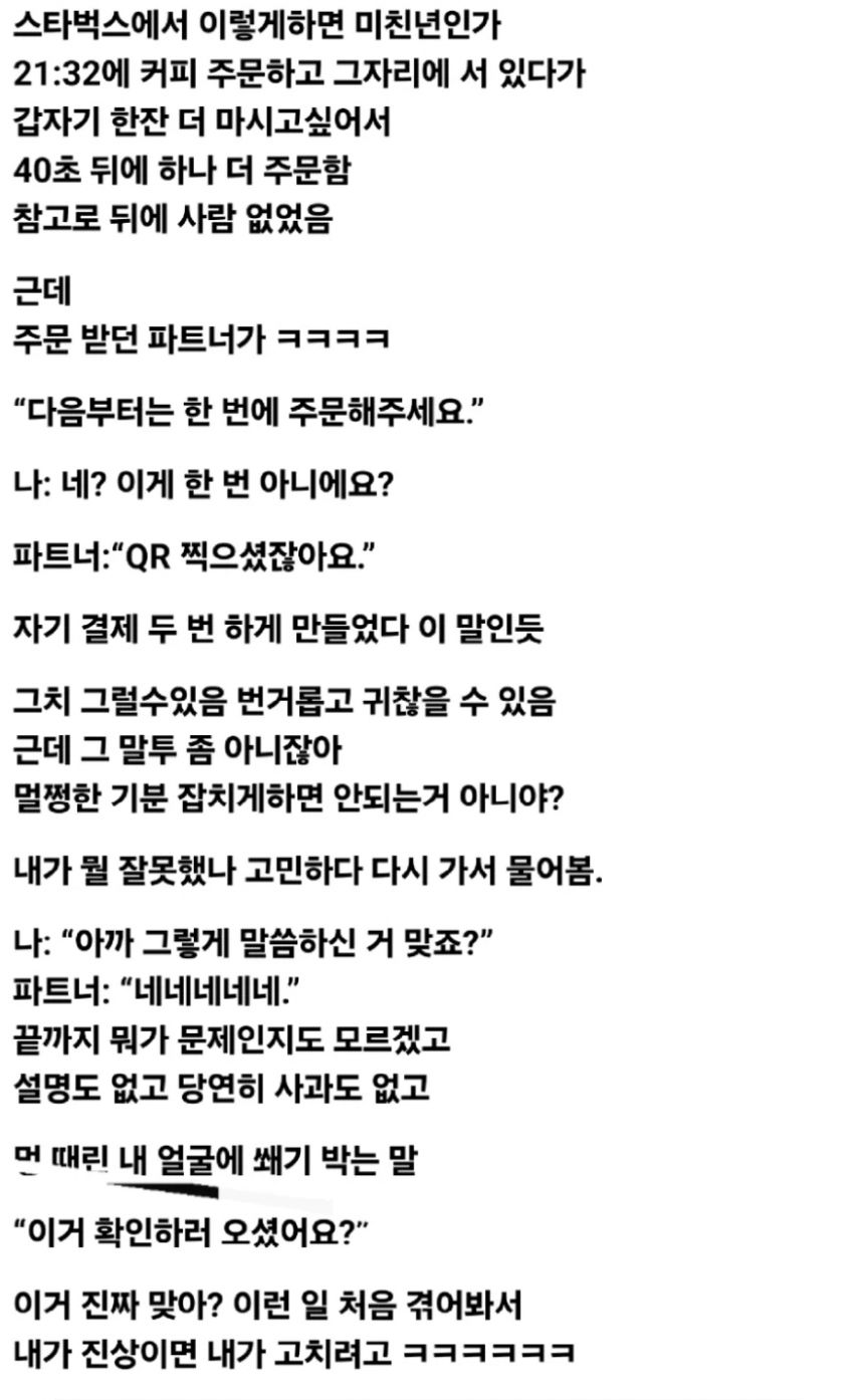 스타벅스에서 이렇게하면 미친년인가?